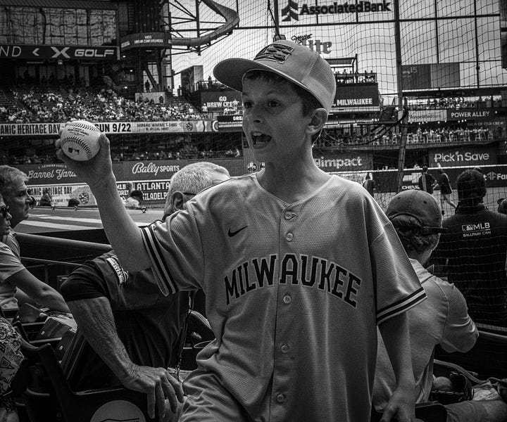 I got invited to a Brewers game today by my buddy James, who had some amazing seats right next to the Giants' dugout. I brought my Sony camera along and managed to snap some decent photos. While I had to do quite a bit of editing in Lightroom, I’m really starting to get the hang of the camera, and each experience helps me learn more. The game itself was a lot of fun, especially since the Brewers dominated and cruised to a 6-0 victory. Overall, it was an enjoyable day both for the photography and the game