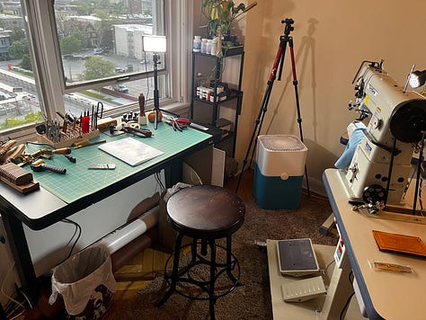 Photos below show the setup and where I’ll be working. More to come as I get familiar with everything and begin making a glove.